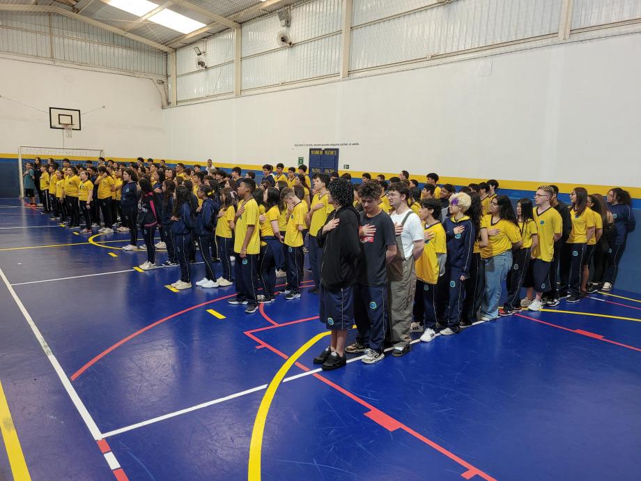 1º Dia - Entoação do Hino Nacional Brasileiro + Hino da Proclamação da República